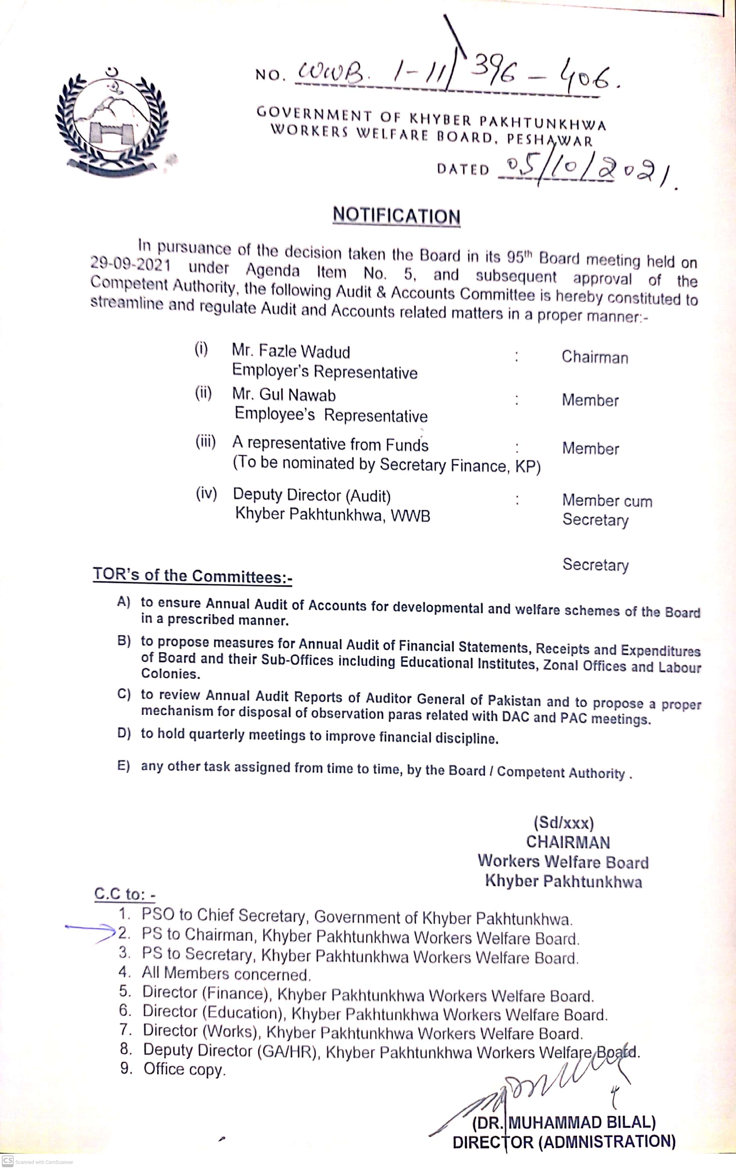 May 10, 2021 Audit & Accounts Committee is constituted to streamline and regulate Audit & Accounts matters in a proper manner. Click here for Official Notification