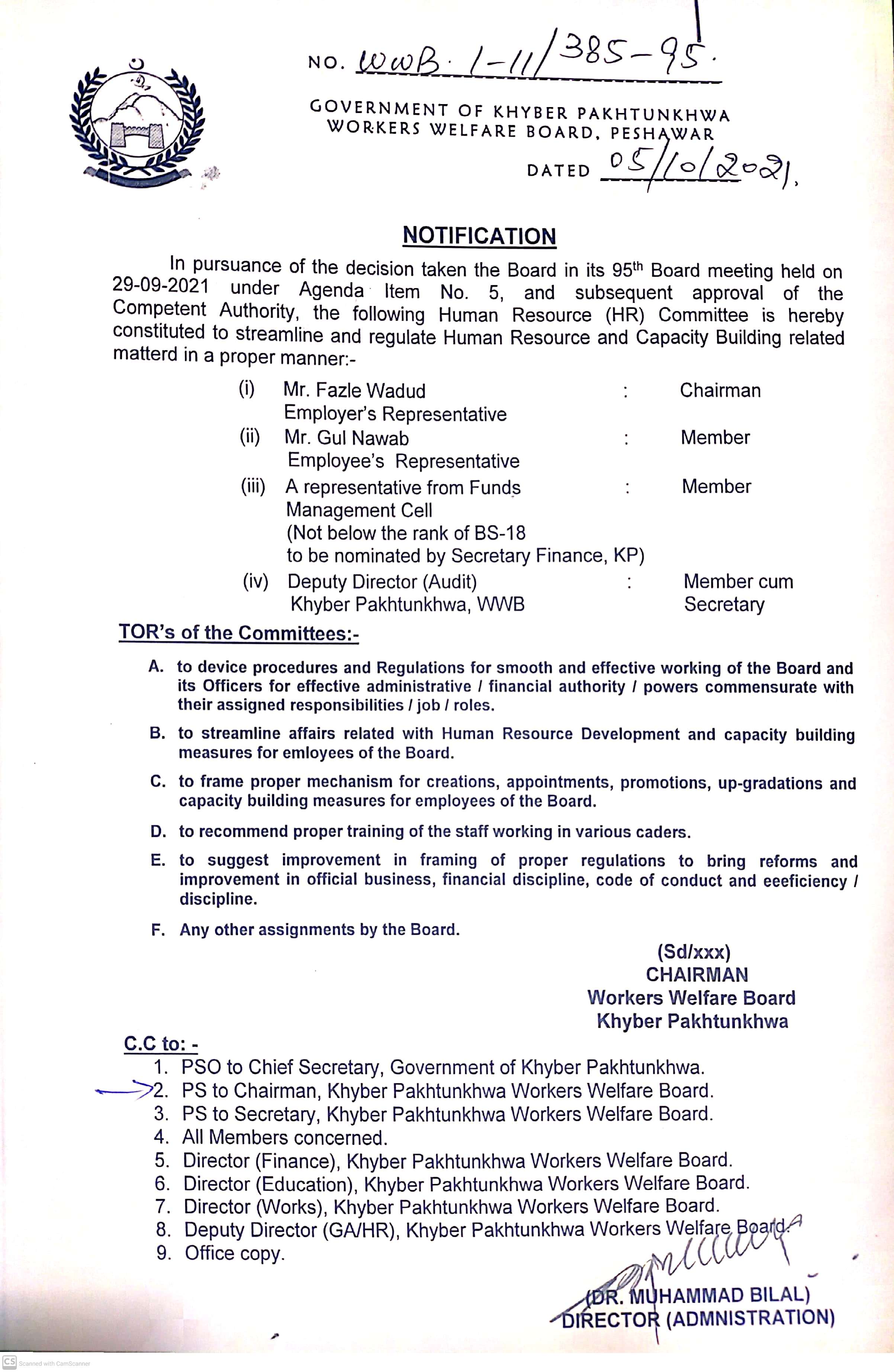 May 10, 2021 HR Committee is constituted to streamline and regulate Human Resource and Capacity Building related matters in a proper manner. Click here for Official Notification